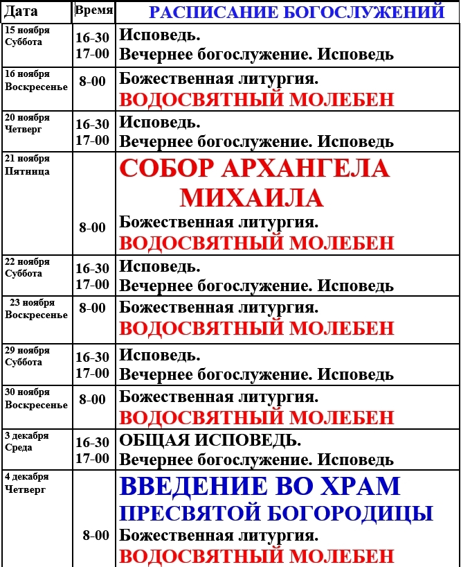 Расписание в Храме в честь великой княгини Елисаветы Феодоровны