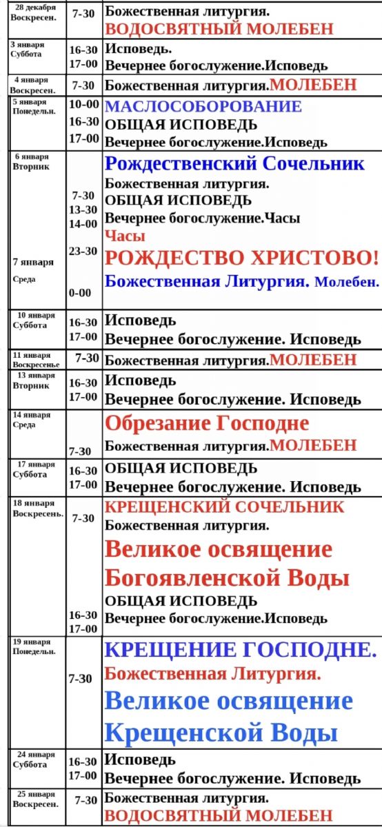 Расписание богослужений